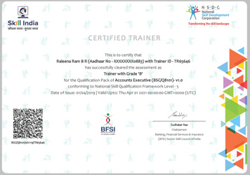 Our Faculties our trained , assessed & certified under the BFSI-SSC